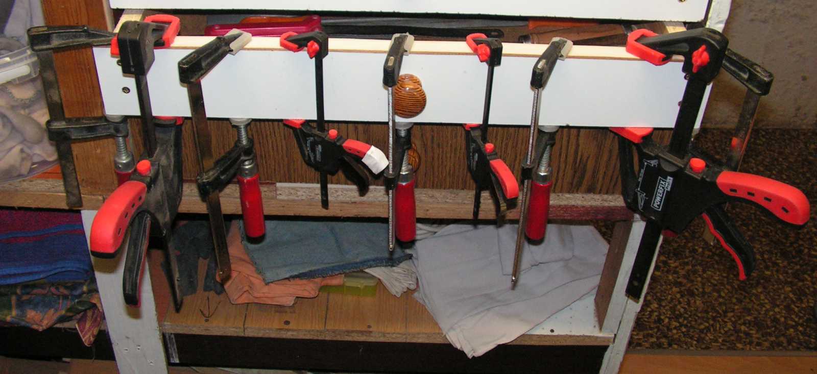 felületre, kihúztam azt a fiókot, amiben a régebbi asztalos szorítóimat tartom,