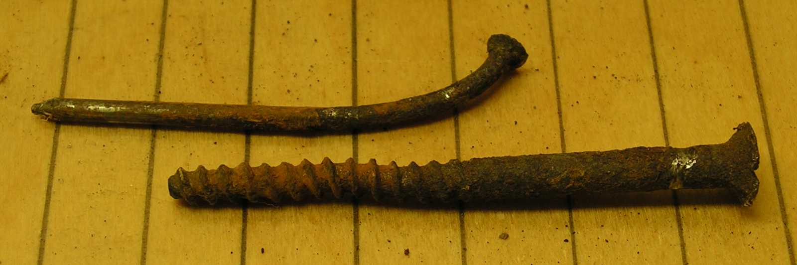 A balra ferdén kiálló rozsdás valami egy csavar, míg a szintig beütött egy szeg.