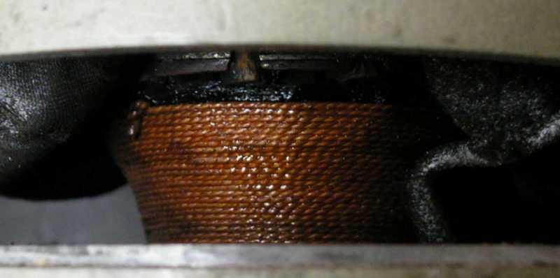 Mivel a villanymotor kommutátorai felé tartó vezetékeket épp olyan cérnával szokás lekötni, mint amilyenből nekem is van egy spulnival, így akár még az is megeshet, hogy ez is én voltam. Ezt amúgy abból gondolom, hogy a motor többi, vagyis fekete részével ellentétben, ennek a résznek még szép sárga cérnaszíne van. |