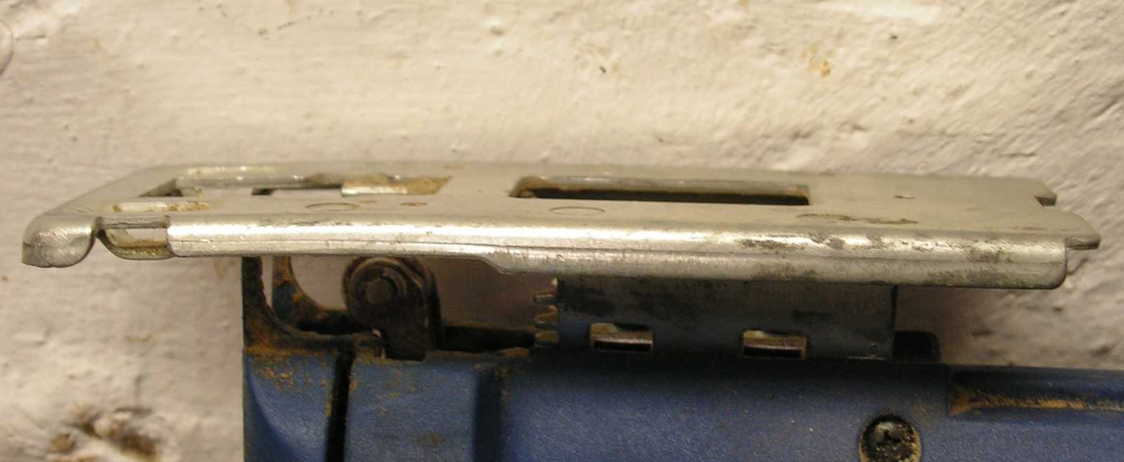 Ez a kép azért kapta az "ott van" címet, mert egyrészt "ott van" a talp közepén az a lehetőség (mármint a két csavar képében), hogy a gépet az anyaghoz képest 45 (vagy ki tudja hány) fokban megdöntsük, másrészt a jobb oldali két mélyedésbe betolható oldaltámasz még mindig "ott van" valamelyik fiókom mélyén. |