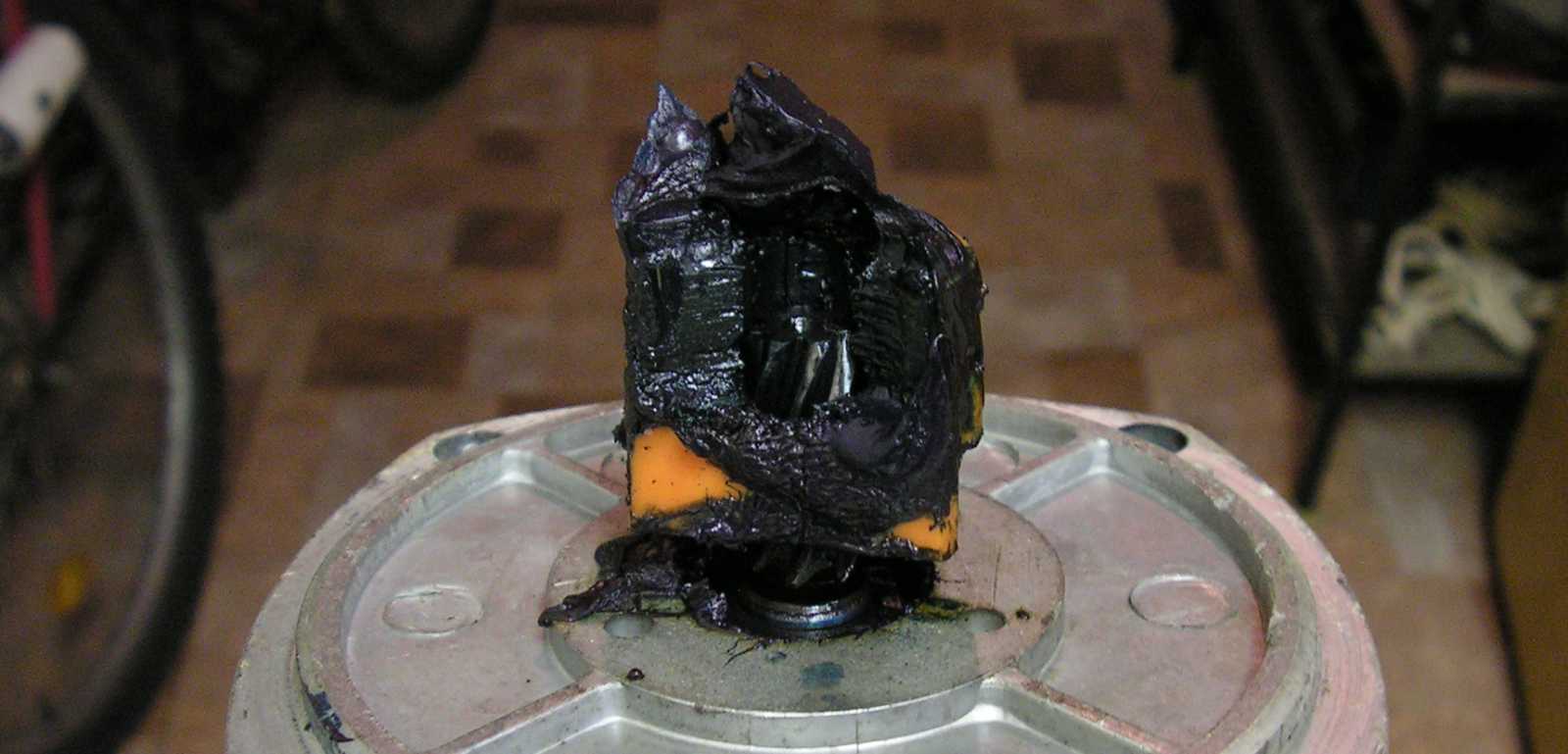 Mikor ezt a fekete zsírmocskot megláttam, hangosan kimondtam, hogy jaj! Mármint jaj de gyorsan össze fogom én ezt a gépet rakni. A zsírmocsoknak egy kissé mellénézve, a munkadarab azonosítószámában látható cirill betűkből kiderült, hogy ez a gép valószínűleg szovjet, vagy mondjuk bolgár. |