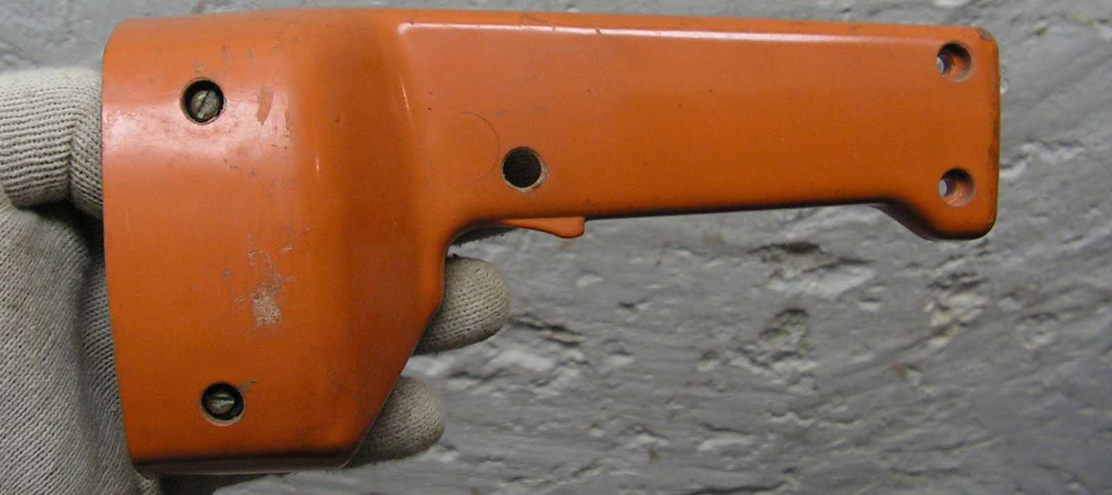 Ennek a gépnek azért áll ilyen furán a markolata, mert ez ugye a nevéhez híven egyenesen csiszol, vagyis szemből nézve van rajta a csiszolótárcsa. Mármint azért áll így, mert ahhoz a feladathoz, amire ez a gép való, ezt az állású nyelet lehet jól megmarkolni. |