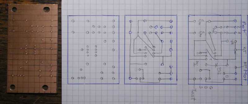 Most jönne az a rész (de csak mert már megint félbehagytam a feladatot), mikor a tervet elkezdem letisztázni. Egyrészt hozzá kell igazítani a forrpontok (furatok) helyét az alkatrészlábak távolságához, másrészt ki kell igazítani a keresztezéseket. Arról már nem is beszélve, hogy rá kell igazítani a rajzot az amúgy már majdnem fix panelméretre. A majdnem fix jelen esetben azt jelenti, hogy ha bármi okból szükség lenne rá (például valami nem fér el), akkor a panel a helynél (távtartók magassága) akár több centivel is magasabb lehet. Ezt amúgy a távtartóknál már eleve magasabb trafó, mint a helyet felülről határoló elem teszi lehetővé. |