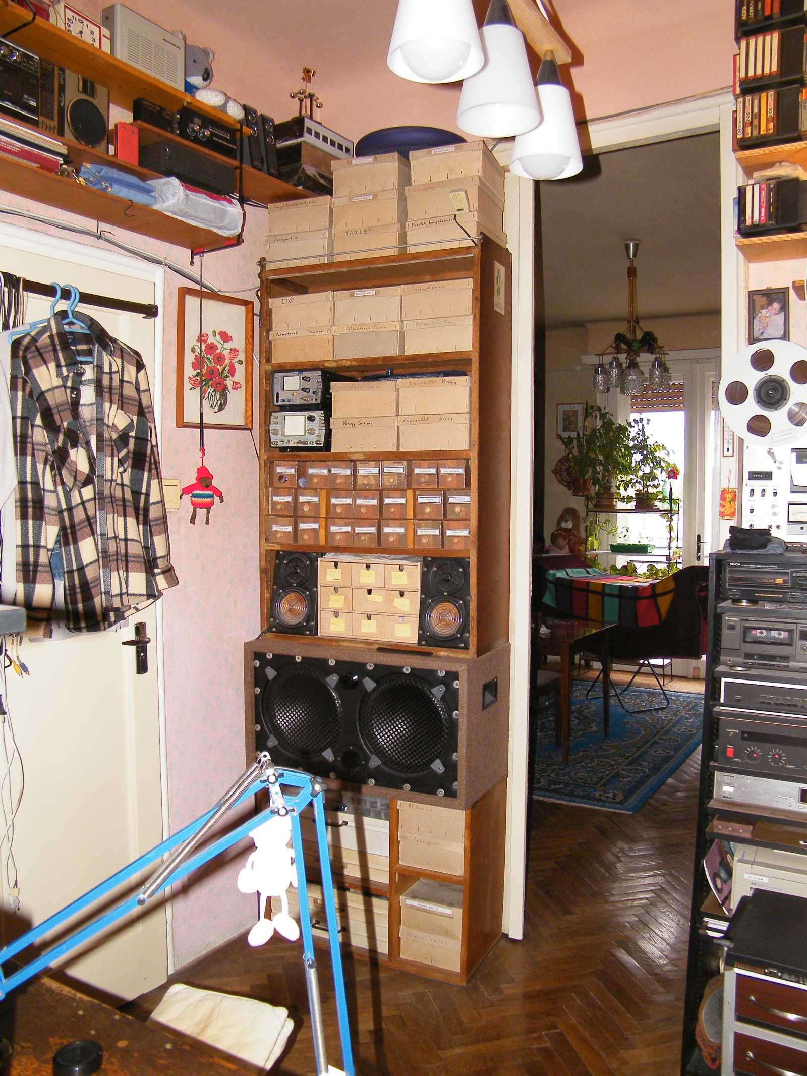 Mikor nem találok 555-öt, háromlábú stabilizátort, vagy műveleti erősítőt, esetleg valami csatlakozót, olyankor valamiért mindig csak sokadjára jut eszembe, hogy a keresett dolgok a képen látható szortimentek valamelyikében találhatók. Enne oka valószínűleg az, hogy ezekbe már az elektronikával történő foglalkozás abbahagyása után pakoltam be, így a létüknek nem volt bennem oka tudatosulni. |