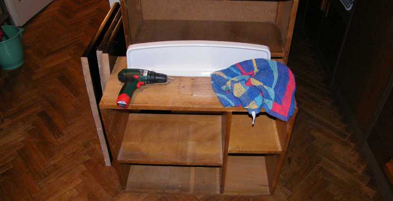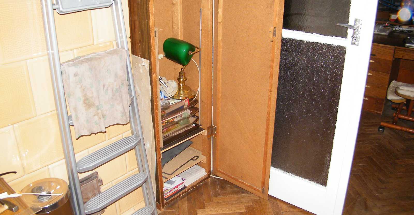 Mivel már nincs vele több dolgom, ezért a szekrényt - hogy legyen hely - visszatettem a helyére. Most egy kicsit ugyan kifelé dől, de ezt majd megoldom, mondjuk az apró elmaradások a lakásban tizenharmadik fejezetének keretében. |