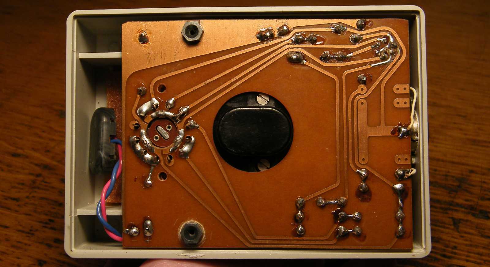 Az elektronika annyira korrekt, hogy még differenciálerősítő is van benne, gyári kettős tranzisztorra egy szerencsétlenebb fejlődési vonalú országban azonban (lett légyen az bármelyik is) már nem futotta, mire fel a konstruktőr egy fémgyűrűvel összefogatott két tranzisztort. Míg az egyik tranyó a műszert vezérli, addig a másik az egyik hőmérséklettől függő paramétereit kompenzálja. |