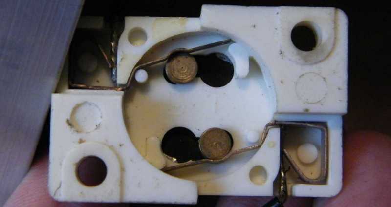 A képen látható, két piros nyíllal jelölt hézag mondhatni érthetetlen. Mármint a keletkezése az, hiszen a fénycső és a foglalata között éveken át jó volt a kapcsolat, most meg nem, mert nem mindig ér be a cső lába az érintkezőig. A foglalatot tartó csavarok meglazítása, a foglalat odébb tolása, majd a csavarok meghúzása - mint megoldás - azért nem játszik, mert ugye a csavarokhoz tartozó anyáknak a másik oldalon semmi sem tart ellen. |