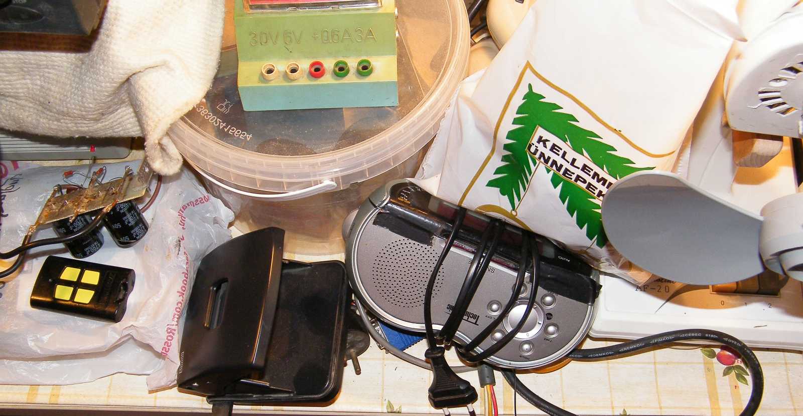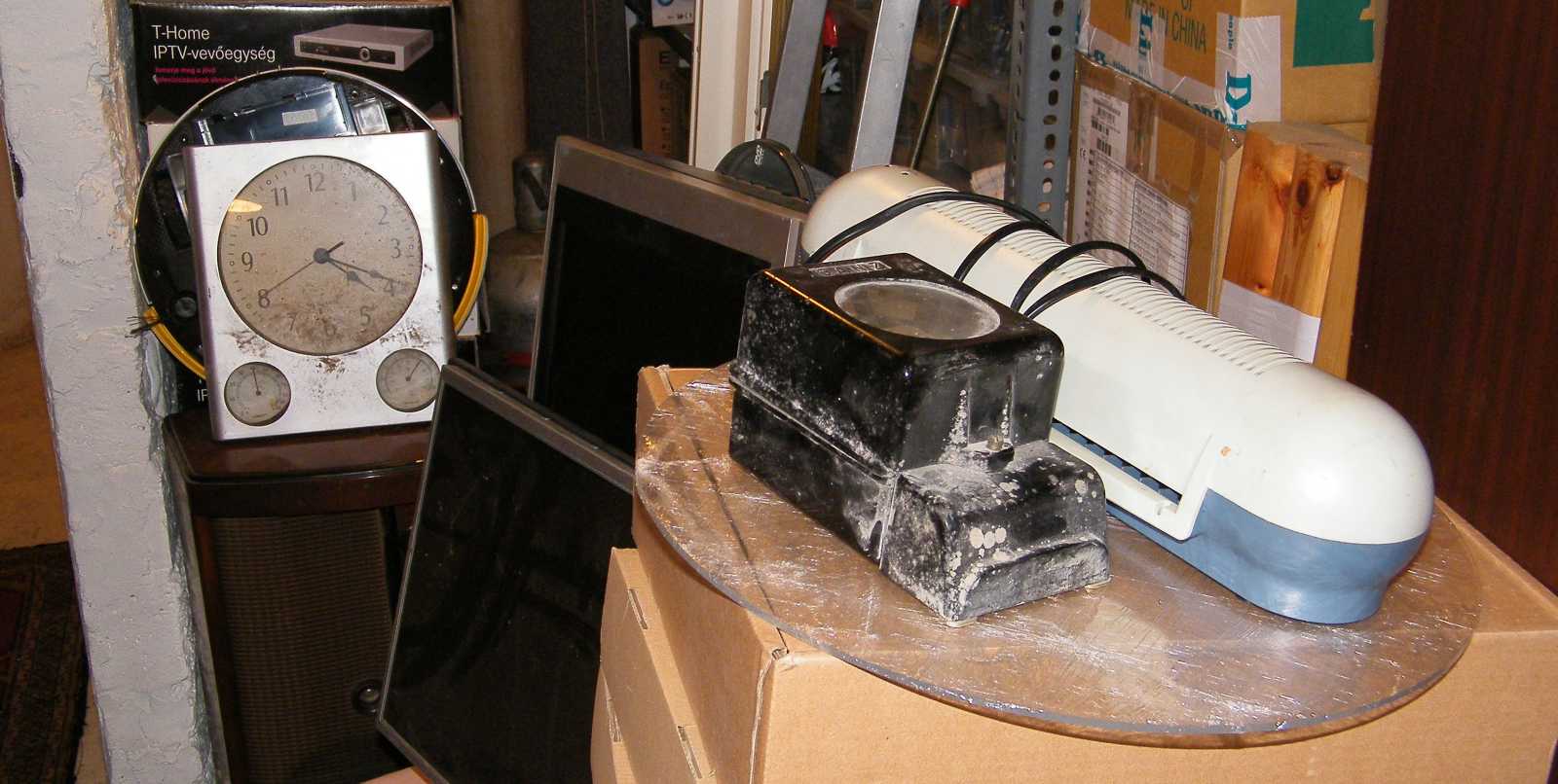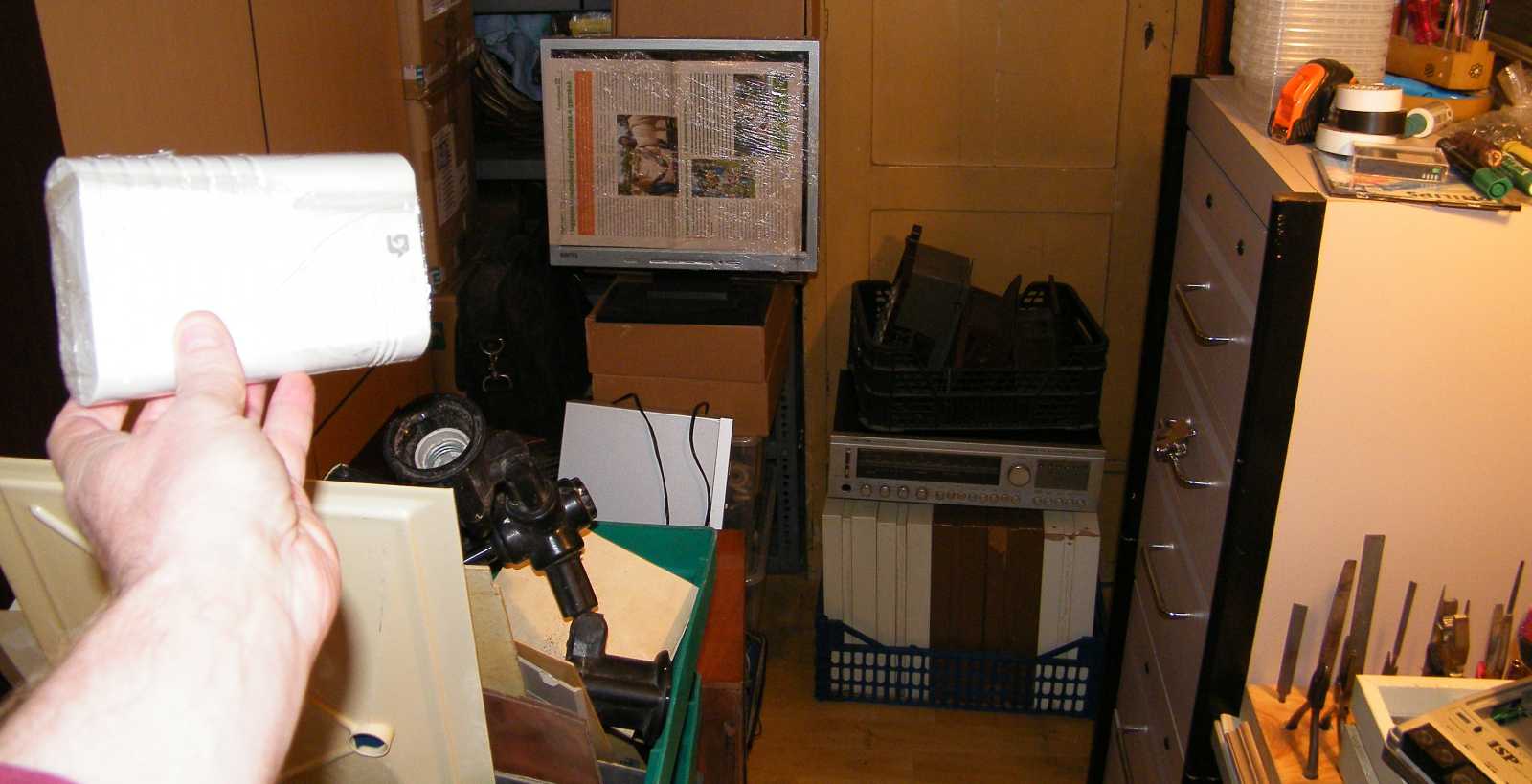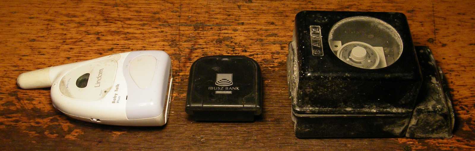 Ez úgy nagyjából az előző helyszín, csak a kamerát tartottam más szögben. Mivel a Ganz időzítő órát már mutattam, így a képen látható példány kapni fog némi törődést, aztán már csomagolhatom is el. Tőle jobbra az a formátlan buci izé, az egy laminálógép. Úgy nagyjából középen az egyik fekete ablak egy lapostévé, míg a másik egy kissé kerethiányos monitor. Az Orion 449-es rádió tetején egy robotporszívó hever, amit (megjegyzem egyértelműen sikertelenül) egy hő és páratartalom mérős órával takartam el. |