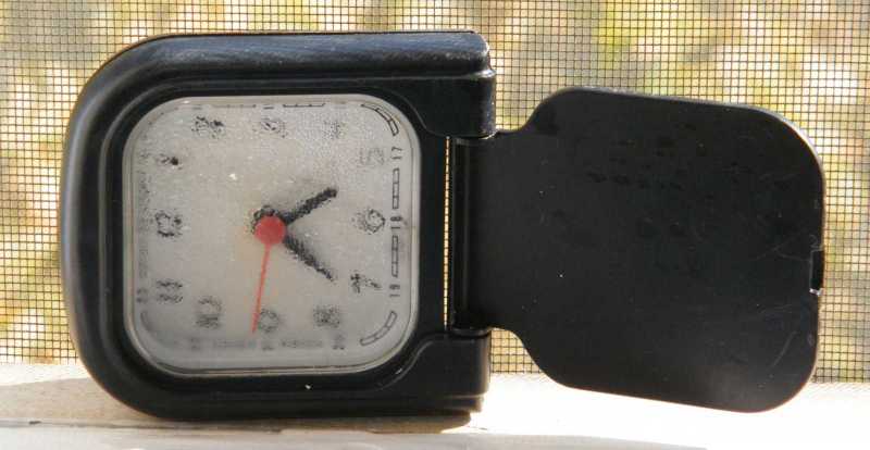 Másnap reggelre az óra számlapja bepárásodott, ami egyértelműen annak volt köszönhető, hogy az enyhén nedves ruhás átdörgölés helyett bevágtam a csapba. Hogy ezt az akciót már így magában sem élte túl, az azért nem fáj, mert sejtésem szerint az óra belsejének már amúgy is annyi. |