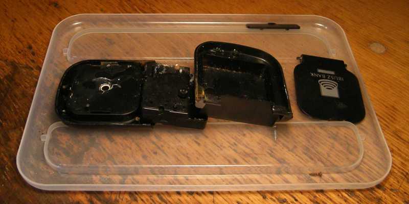 Mivel ez már a sokadik hasonló felépítésű óra, így meglepő részletekre már eleve nem is számítok. Hogy az órát összetartó háromból két csavar könnyen kitekerhető volt, a harmadik azonban már nagyon nem, az egyértelműen a rozsdának volt köszönhető. |