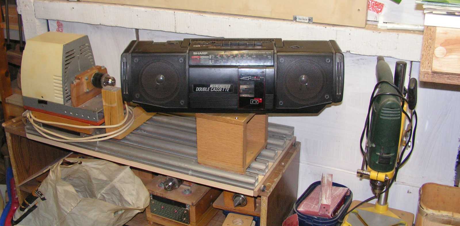 Az egyik ilyen dolog ez az egyre használhatóbbá alakuló eszterga lesz, mely csodálatos gép kiegészítőinek készítéséről egy egész csokor cikket írtam. Hogy az eszterga tetején egy rádiós magnó ül, az ugyan kissé zavar, de már megszoktam. |