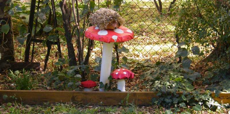 Ez a kép pedig már a kertben mutatja a gombákat. A nagyfejű mérges gomba készítéséről is készült egy farigcsálós cikk, amiben a rajta ülő süni készítését is megmutatjuk, csak az a cikk valamikor később lesz publikálva. (mint az később kiderült nem, hanem korábban) |