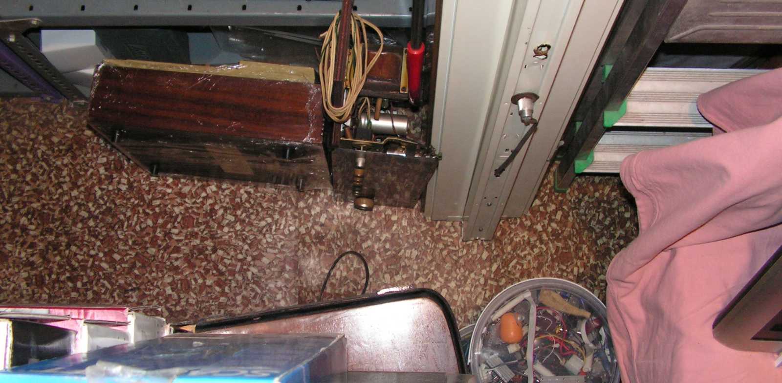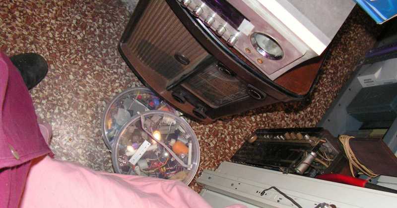 A pince ajtajának kinyitása utáni elsődleges feladatom az volt, hogy betegyem a helyére a magnót, csakhogy nem fértem be vele a résbe. Mármint a bal oldalról indulnék, kezemben a B444-es Tesla magnóval, nyitásképp átlépném a két vegyes bontott tartalmú vödröt, majd át kellene csusszannom az Orion 449-es rádió és a Melodyn maradványa között. Bár nem vagyok kövér (na jó, egy kicsit de), de ez nekem még akkor sem menne, ha nem lenne közben a kezemben a nem is olyan kicsi magnó. |