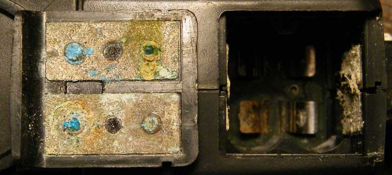 Hogy a vaku elkóját kitámasztó szivacs elporlott, mire fel ezen a képen már csak mint por látható, azt kisebb hibának érzem, mint a ki tudja hogyan odakerült víztől megrozsdásodott csavarfejeket. Mármint mi lehet bentebb, ha már a csavarok is rozsdásak? Amúgy nem találtam semmi más feltűnő hibát. |