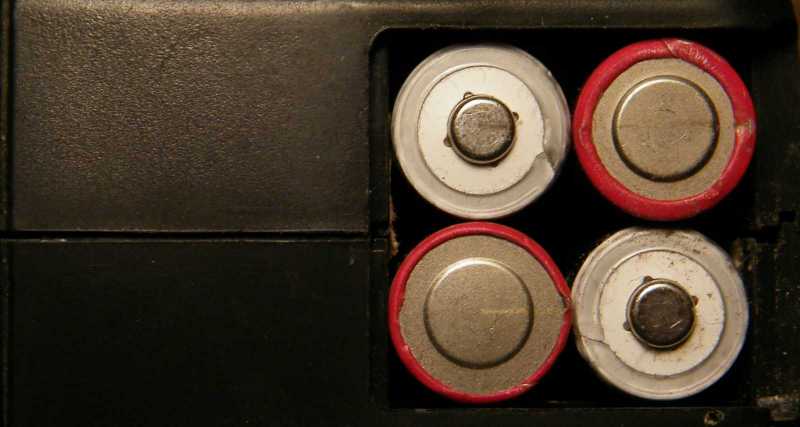 Az elemek behelyezési pozícióit mutató címkék közül csak egy maradt meg, de mivel a belső érintkezők nem egyformák, így a matricák hiányának ellenére is ki tudtam sakkozni, hogy hogyan valók a tartóba az elemek. |