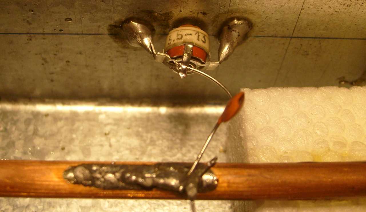 | - a vágás helyét beállító trimmerkondenzátor (középen a sliccelt csavar) |