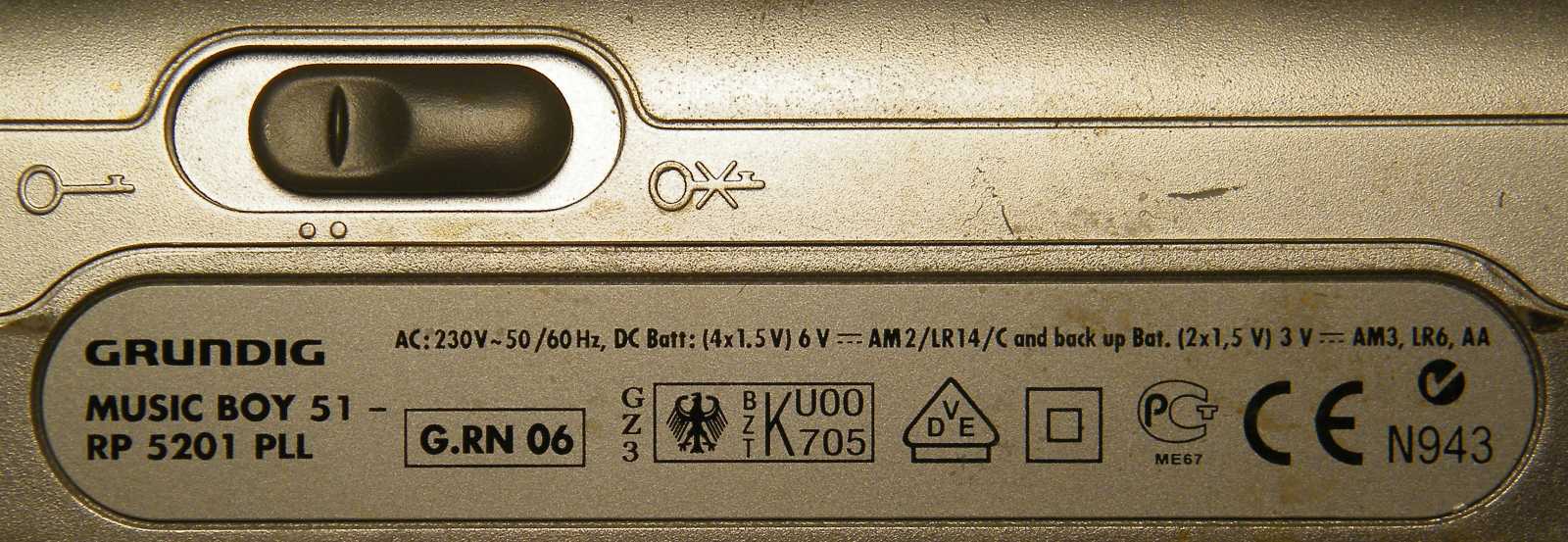 Az adattábla számomra azzal az érdekességgel szolgált, hogy hálózati trafó is van a készülékben. Amúgy persze valósággal virít az ezüstszínű hátlapon a borotvacsatlakozó fekete aljzata, csak azt eddig valahogy még nem szúrtam ki. Gondolom azért nem, mert ez a rádió végig egy zacskóban volt. Mindeközben a balra fent látható kapcsolóról a készülék bekapcsolása nélkül el nem tudtam dönteni, hogy mégis mi a csudát zár le. |