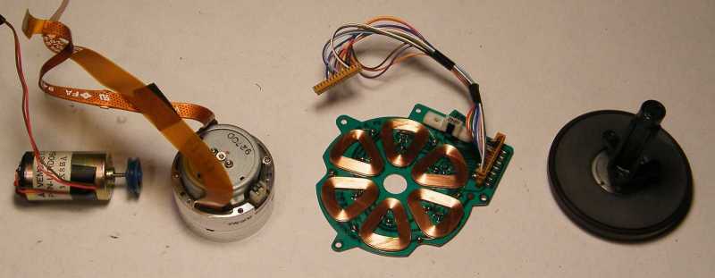 A mechanikában amúgy három motor volt. Míg az egyik a szalaghúzó tengelyt és az orsózó tüskéket forgatta, egy másik az üzemmód vezérlő tárcsát (lásd jobbra lent), a harmadik pedig magát a fejdobot. |