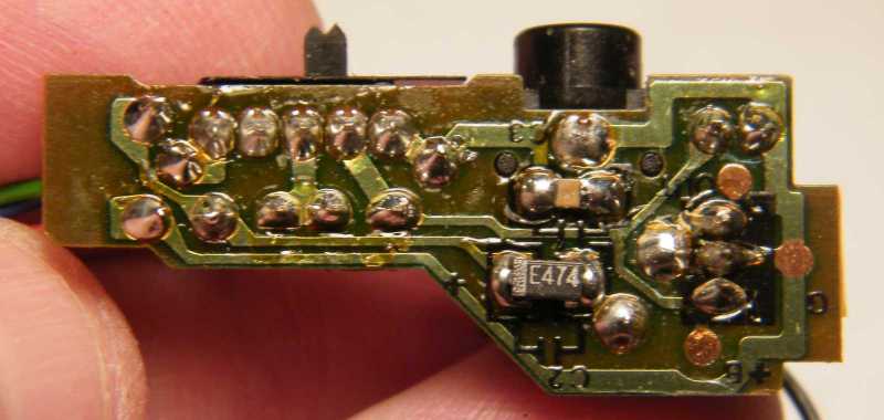 Hogy a japánok a gyárban mindent egy lapra tettek fel, az valószínűleg azzal volt indokolható, hogy több panel számára már eleve nem volt hely. A nagy zöld lap amúgy csak a kamera magnó részének elektronikáját hordozza. |