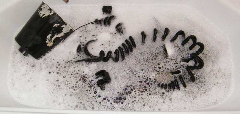 Épp mint ahogy arra a kérdésre is, hogy miközben én a kád innen nézve bal szélén ülök, a kádba beguruló csődarab (lásd jobbra) képes-e elkószálni a kád beejtéssel átellenes végébe, miközben srr srr srr hangokat hallat, amivel persze a frászt hozta a szerzőre. |