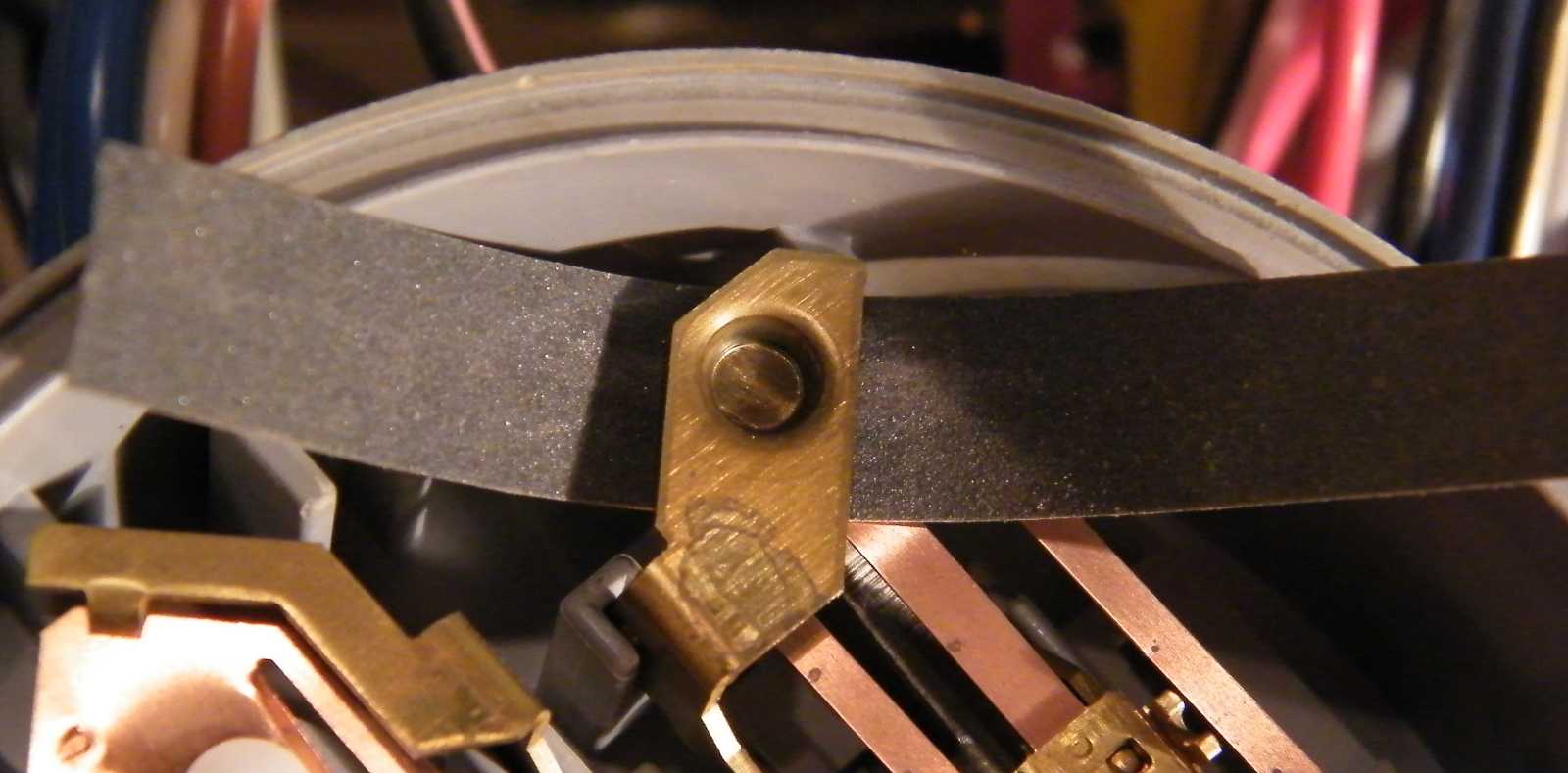 egy vékony csíkot polírozó papírból, amit aztán befűztem az érintkezők közé,