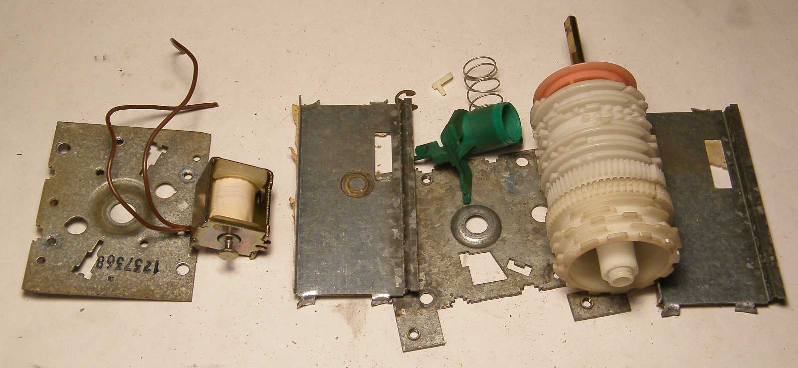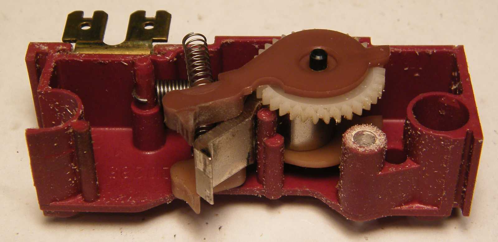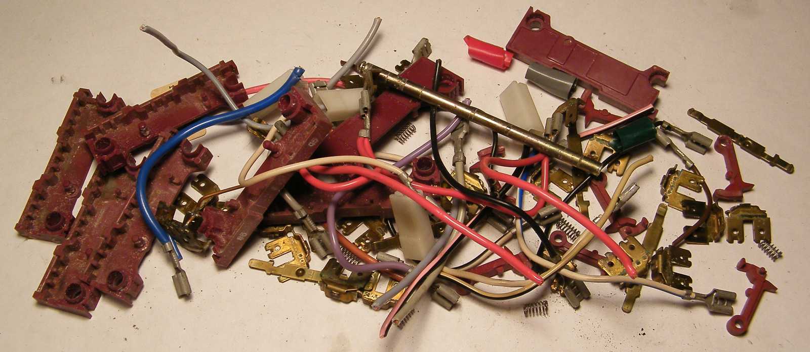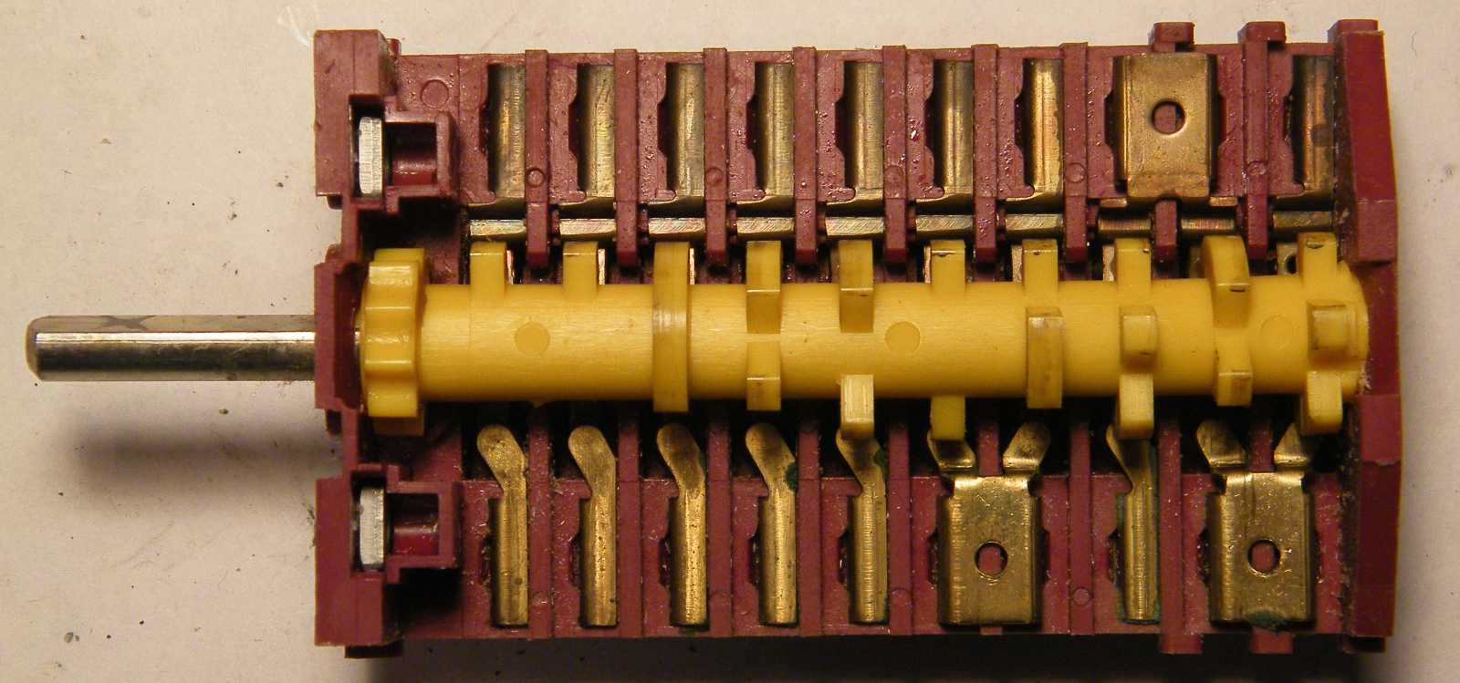 Eddig jó vagyok, s még a lelkem sem roppant bele a kapcsoló elpusztításába. Ellenben az, hogy az érintkezési hibák javítására lett volna némi esélyem, az azért egy kicsit megviselt. Ehhez persze az kellett volna, hogy mielőtt lerombolom, a programkapcsoló teljes felépítésével tisztában legyek, ami ugye csak így utólag volt lehetséges. |