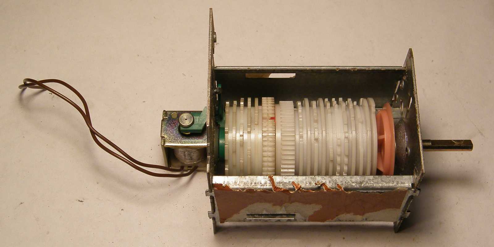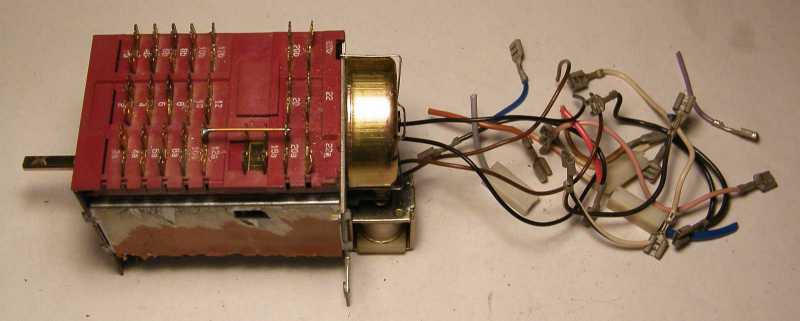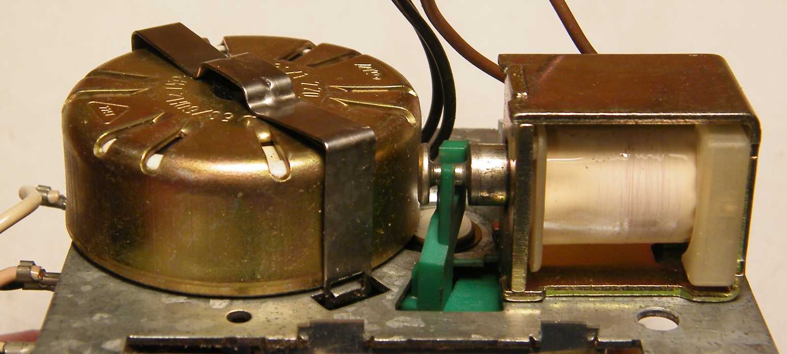 A balra látható kerek valami a programhengert forgató motor, míg a jobbra látható elektromágnes egy olyan kuplungot működtet, ami meg tudja állítani a vezérlőhenger forgását. Már ha - mint megannyi mást - ezt is el nem néztem... |