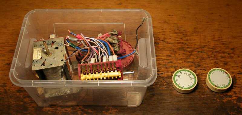 S már kaptam is magam elé az amúgy hatalmas programkapcsolót, majd a lehúzogattam a vezérlésről leválasztott elemi kapcsolók vezetékeit, ami amúgy nem volt valami egyszerű. Majd mindjárt megmutatom, hogy miért nem, csak előbb még a kapcsolókat vesézem ki. |