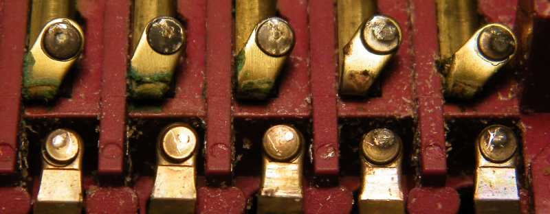 Hogy némelyik érintkező idővel nem tette a dolgát, azt szerintem egyértelműen a por okozta, amiből egyetlen apró, az érintkezők közé bejutott szemcse is elég a kapcsolási anomáliához. |