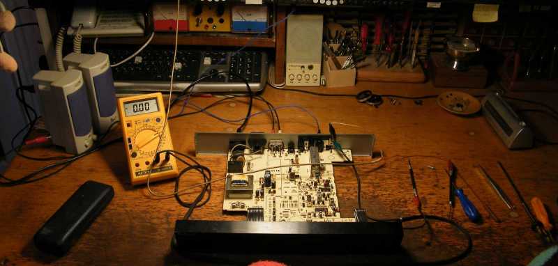 Nemcsak a multimétert vetettem be, de még az egyik jelgenerátort is, a hibának azonban még csak esze ágában sem állt jelezni, hogy merre található. Mindössze annyit értem el, hogy a rádió időnként néhány másodpercre megszólalt, aminek vagy volt köze a piszkálásomhoz, vagy nem. Mármint simán megtette, hogy miközben én a panel feliratait hasonlítgattam össze a kapcsolási rajzzal, vagyis épp hozzá sem nyúltam a panelhez, a rádió egyszer csak megszólalt, majd kisvártatva elhallgatott. Ezt amúgy csak FM-en tette, AM-en nem. Mármint középhullámon meg sem szólalt. Hallani amúgy ott is lehet, hogy valahol a háttérben van vétel, de csak annyira mint FM-en is, vagyis épp csak távoli beütésszerű sercegés van. |
