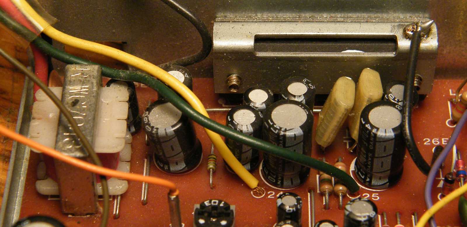 Amúgy a jobbra látható görgőket is a húros dobozban tartom. Mindeközben a balra látható panelban az az érdekes, hogy a zöld LED melletti másik lámpa egy hagyományos izzó. Mármint valaha az szolgáltatta a skálavilágítást. |