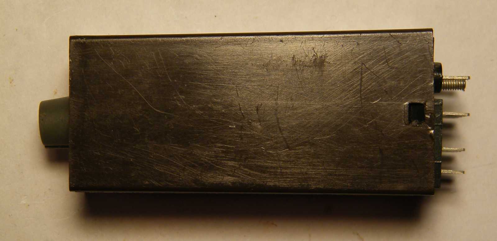 Mivel a dobozba egy normális (értsd tengelyes) potméter nem fért volna bele, valamint amúgy sincs sűrűn tekergetve, így a késleltetés idejét beállító elemként egy zártházú trimmer meghajtása lett kivezetve. |