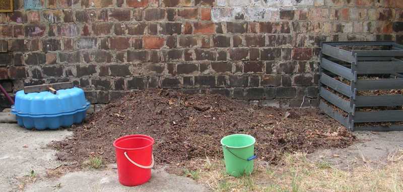 Bár úgy néz ki, mintha a komposztáló már félig lenne, csakhogy ami benne van, az most már nem tartalmaz földet (vagy csak nagyon csekély mértékben), így az idő, az eső, valamint a mindenféle állatkák munkájának hatására az anyag idővel töredékére fog tudni összeesni. Itt említeném meg, hogy a mintegy 1 köbméternyi komposztból annyi földet szitáltam ki, hogy azzal már most bőven ki tudtam támasztani a múltkor épített fekete csőkerítést. |