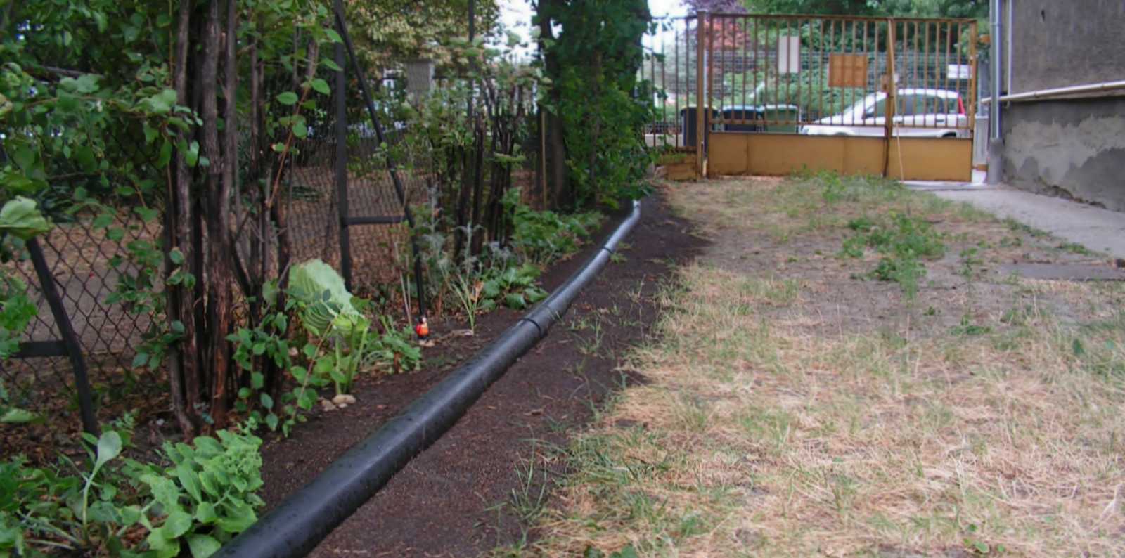 A már évek óta egyre csak romló állagú sárga kerítésről tényleg nem gondoltam volna, hogy egyszer még ilyen szép fekete csőkígyó lesz helyette. A cső melletti feketeséget amúgy a támasztékként odaszórt, a komposztálóból kitermelt, valamint épp az imént még be is locsolt föld okozza. |