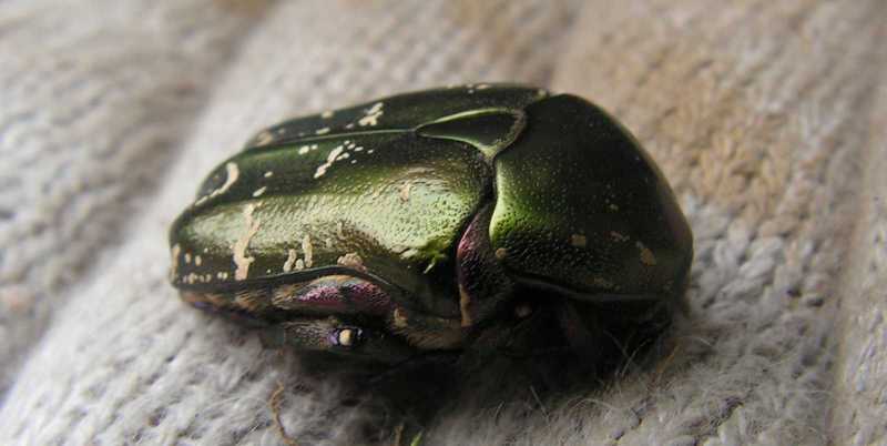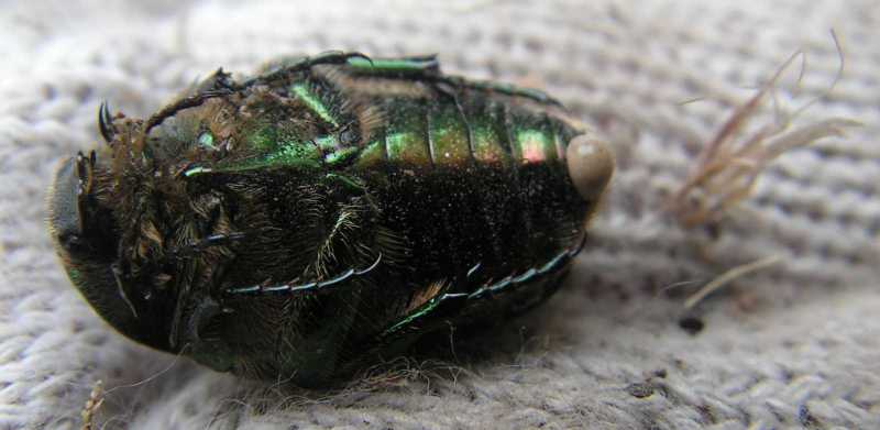 Vagyis egy aranyos rózsabogár. Ezt persze nem úgy kell érteni, hogy nekem tetszik, hanem úgy, hogy a bogár rendszertani neve cetonia aurata. Amúgy teljesen ártalmatlan élőlény, növényeket eszik, azokat sem tőből rágja ki, és még a lárvája is csak a komposztban szeret lenni, akarom mondani enni. |