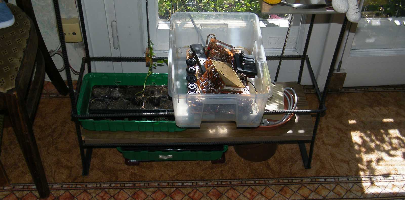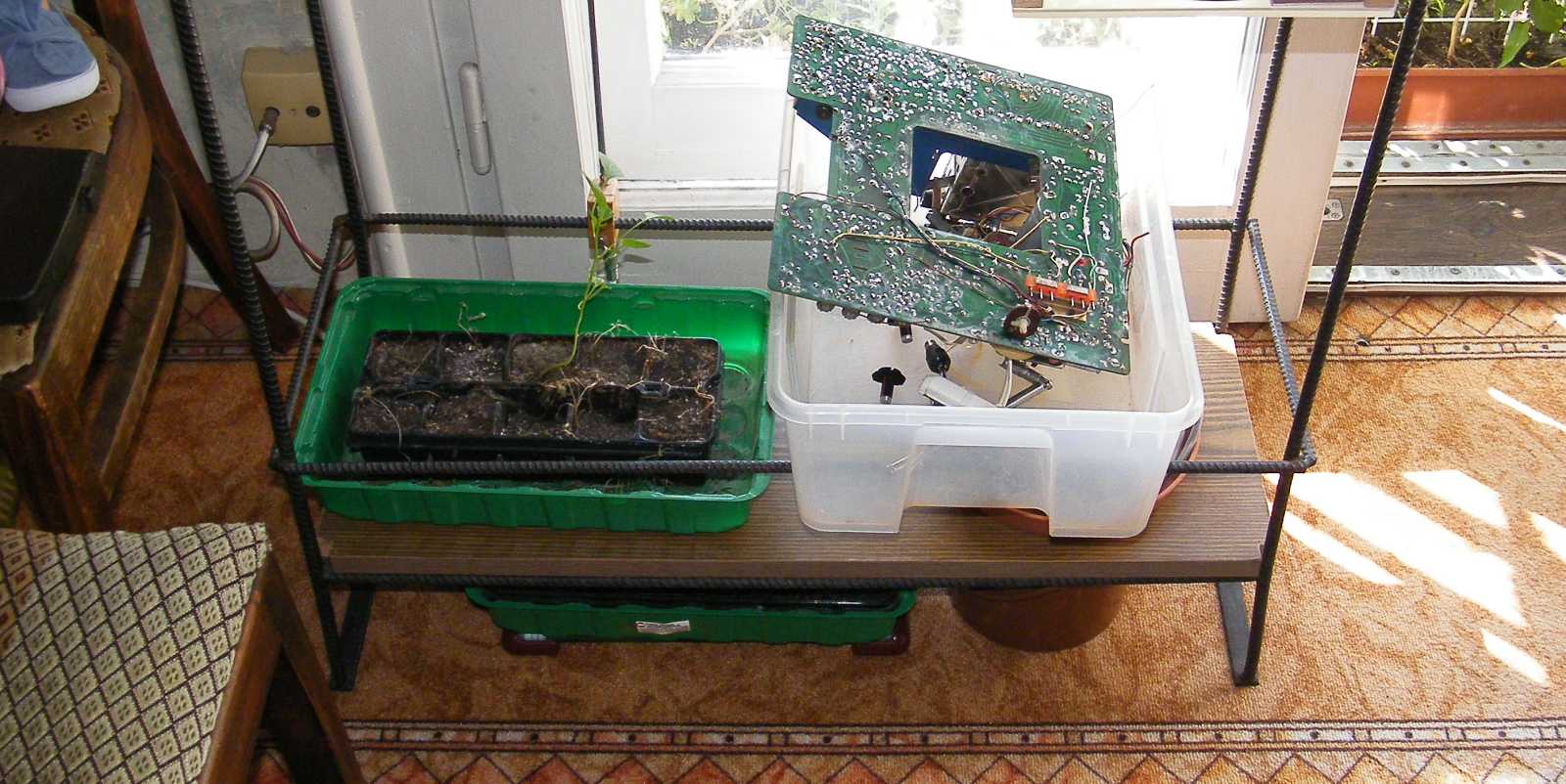 Mikor a panel nyomása alól felszabadult virágállványt - mint elért nagyszerű eredményt - megtekintettem, menten rájöttem, hogy a virágföldes vödröt hagytam odalent, mire fel szegény paprikapalántának még csak esélye sincs átültetődnie! Épp amint ahogy annak sem látom esélyét, hogy a vonattrafót még ma szétszedjem. |