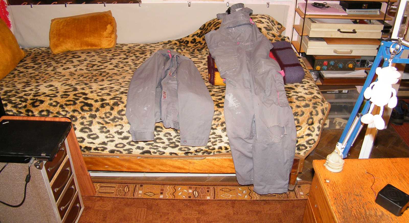 bosszantásomul - a heverőmön felejtette a frissen mosott melósgúnyámat.