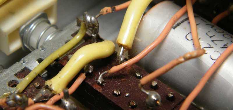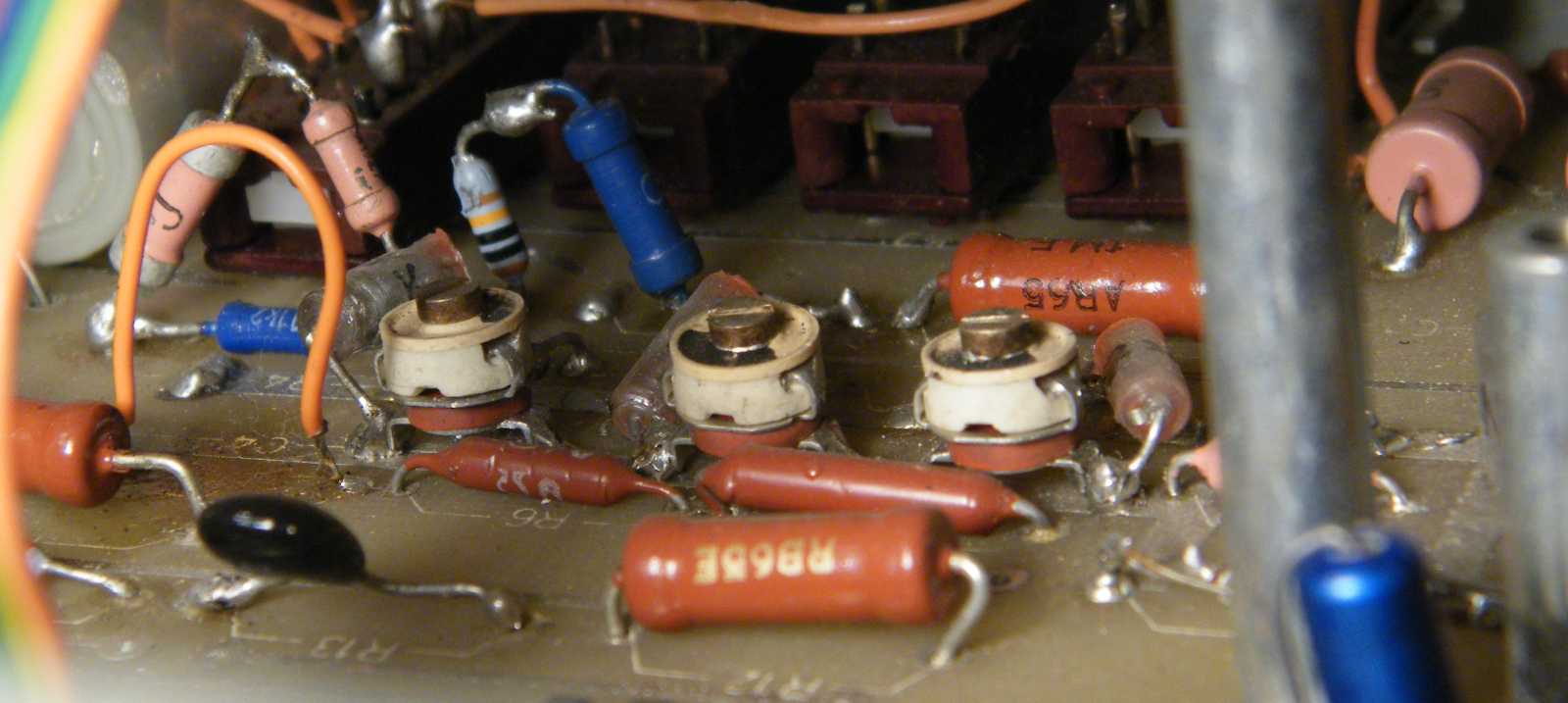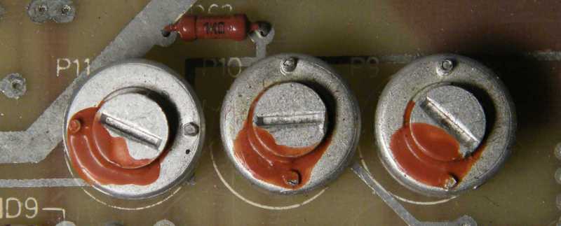 A rengeteg trimmer mellé sajnos csak a pozíciószámuk van odarajzolva, hogy melyikkel mit lehet beállítani, az azonban sajnos már nincs. Ebből kifolyólag a kapcsolási rajz hiányában a trimmerek tekergetésével a műszer működésén inkább csak rontani lehet, mintsem javítani. Mármint ha ezeket elkezdeném tekergetni, keresve köztük a nullát beállító csavart, az összes többi szabályozható funkció elállításával többet ártanék, mint amennyit a nullázással használnék. No nem mintha nem lehetne a trimmerek eredeti állásait alkoholos filctollal bejelölni... |