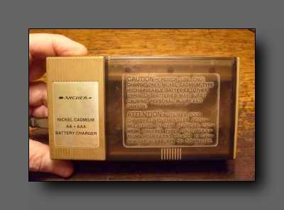 A készülék alján található matrica szerint hongkongi gyártmány, ahonnan Kanadába szállították. 1984 decemberében készült, vagyis 24 éves. Nem látszik meg rajta a kora. A ma készülő dolgok ennyi idő alatt nemhogy elromlanak, de egyszerűen lebomlanak! 120 voltos 60 hertzes hálózatról tölt hat darab akkut, mégpedig 50 milliamperrel. Van ott még egy DC 2,7V felirat is, azaz kettesével tölti az akkukat. |