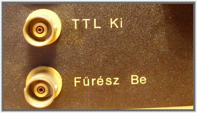 A fűrészbemenet az előlap viszonylag csekély mérete okán már csak itt hátul fért el. TTL szintű kimenet viszont van a készülék elején is, szóval ez itt hátul már csak egy amolyan tartalék. |