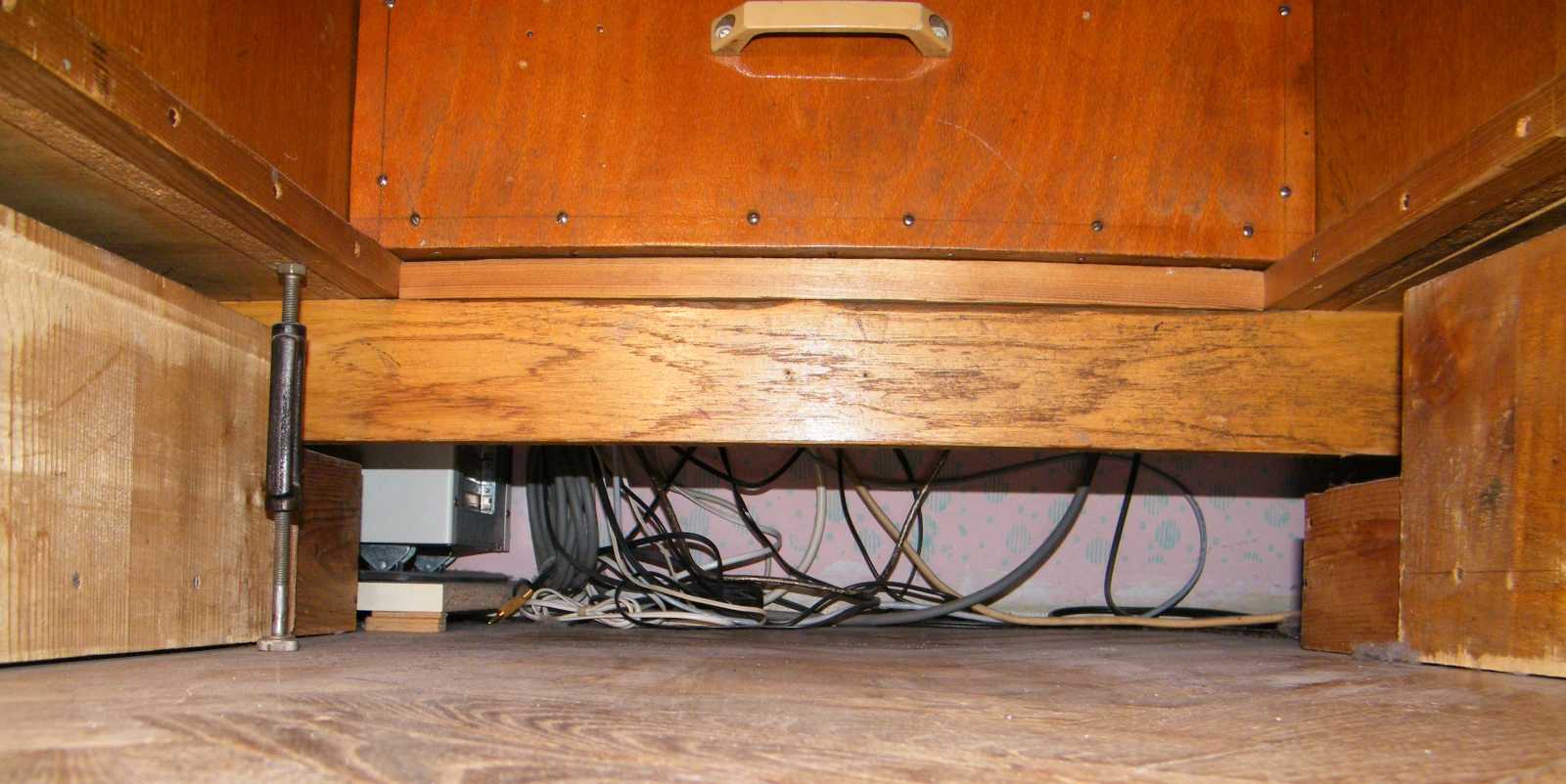 Szerintem ez a tápegység már vagy 40 éve ugyanott ül. Már úgy értem, hogy már az előző asztalnak is a jobb alsó fiókjában lakott, illetve még most is ugyanabban a fiókban van. Az új asztal belakásakor, illetve fiókozásakor ugyanis felhasználtam a régi asztal részeit. Szóval ez ugyanaz a fiók, csak azóta már kapott körben egy plusz peremet. |