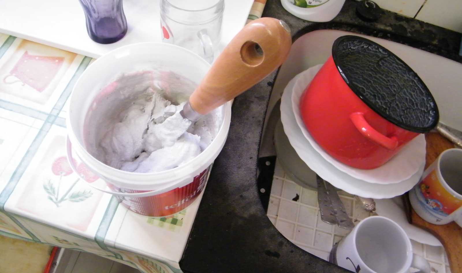 Ha majd rászóródik a glett, legalább nem ragad le a kőre.