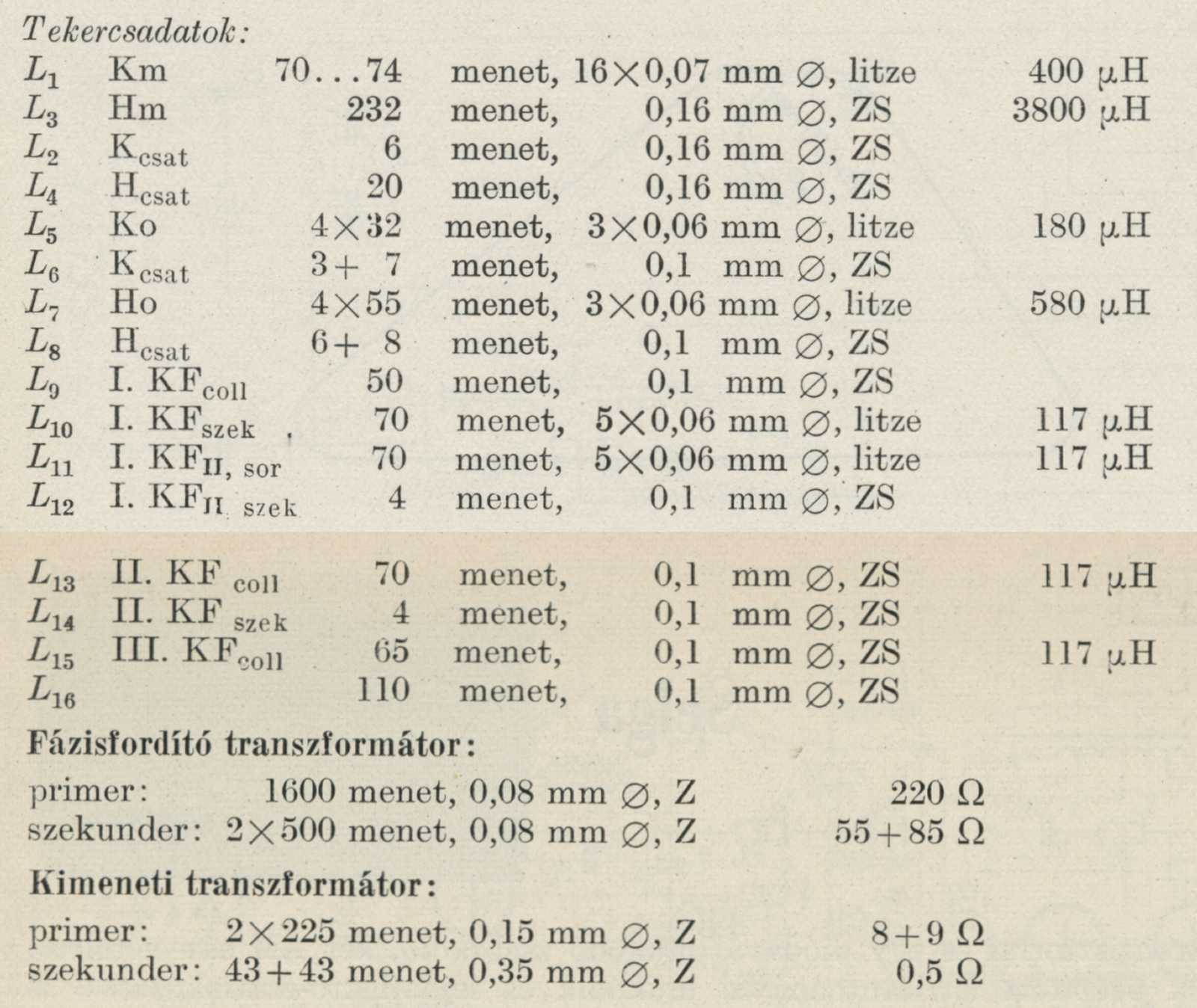 Még az is meg lett adva, hogy a KF trafóknak melyik lába melyik!