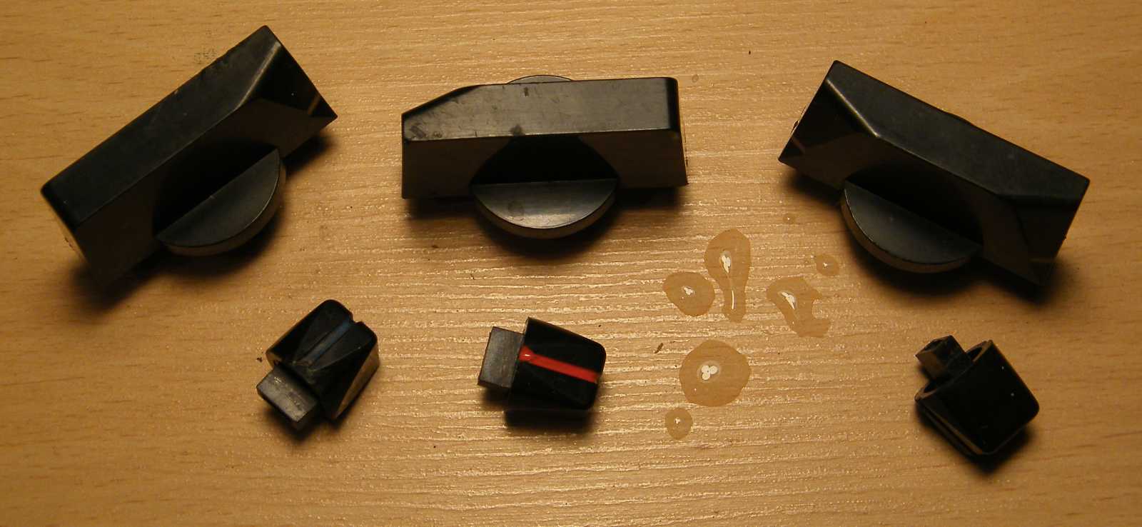 Mivel a műszer eredetileg a magnóban volt, vagyis nem kellett hozzáragasztva legyen az előlaphoz, a barna ragacs jelenléte érthetetlen. (ha csak nem eredetileg szivacs volt, vagy az azt tartó ragasztó) Mivel a műszert nem igazán találtam értékesnek, ezért mikor azt láttam, hogy a vizes szivacs nem használ, rámentem egy kopott fogkefével, az odanőtt pörköltszaftot azonban az sem hozta le. |