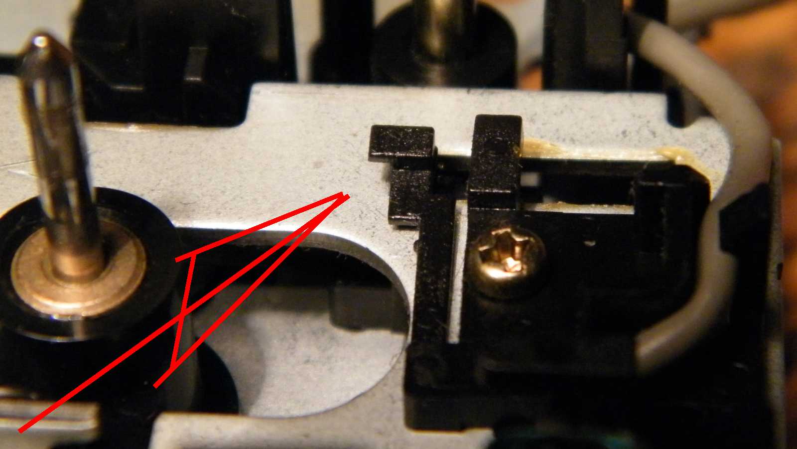 Nem csavar tartotta, hanem csak egy apró pöcköt kellett megnyomnom.