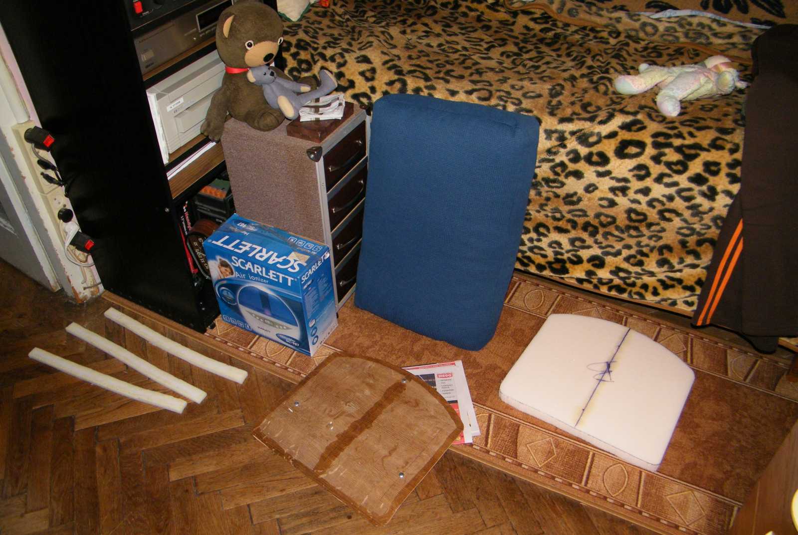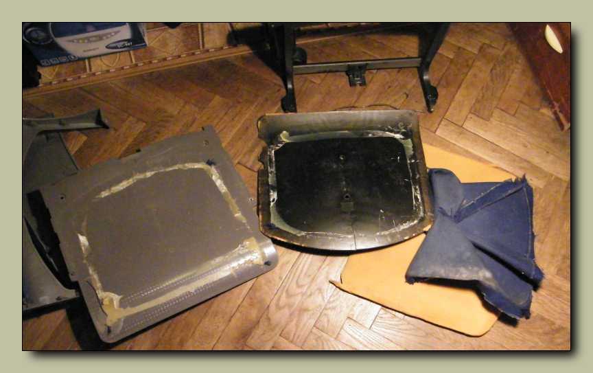 Most viszont már nem volt választásom a szétszedést illetően. Illetve épp van egy (széteső félben lévő) másik székem, amiben ülhetek. Addig-addig feszegettem a legnagyobbik kéknyelű csavarhúzómmal, míg szét nem jött. Az összetevőknek sajnos csak egy része élte túl a procedúrát. Persze utólag könnyű okosnak lenni... Ha előre tudtam volna, hogy mégis mi a csuda tartja össze olyan erősen... |