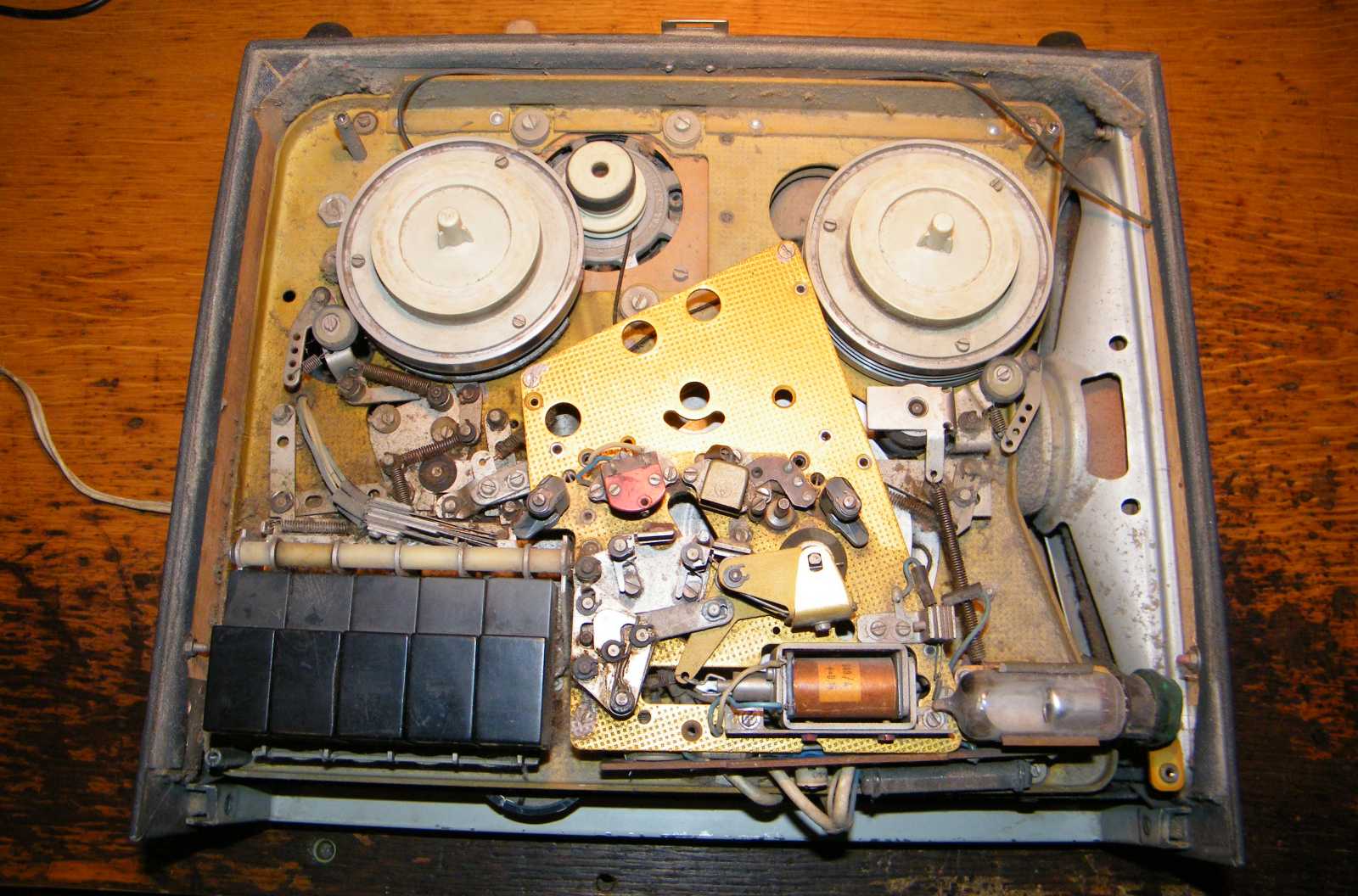 Első ránézésre a magnó minden része megvan. A látványosan üres lyukakból hiányzó mechanikai elemek az ebbe a készülékbe már eleve be sem épített sebességváltóhoz tartoznak. Miközben nézegetem, csak úgy megszokásból tapogatom, fogdosom, nyomkodom. |