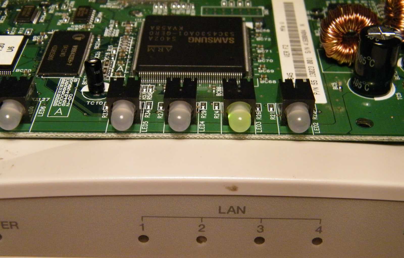 Íme a power és a négy LAN csatlakozás visszajelző LED-je.