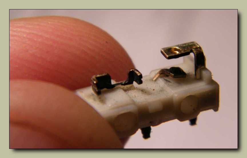 Addig-addig nézegettem, míg csak találtam benne valami hibát. A felső érintkező páros tökéletesen lényegtelen, hisz az be sincs kötve. Ami viszont lényeges, az az alsó páros. A képen épp ők érnek össze. No de hogy? Nem a sarkukkal, hanem a lapjukkal kéne! |