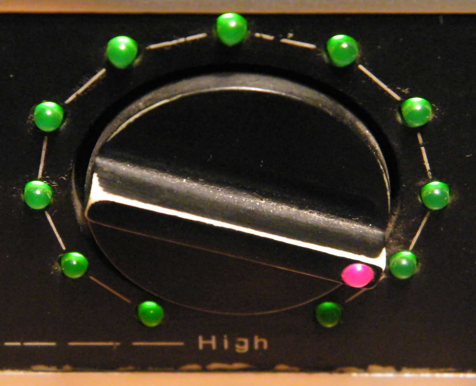 büszkén átvonul, a fele kivezérlés jelző LED-ek színes sora.